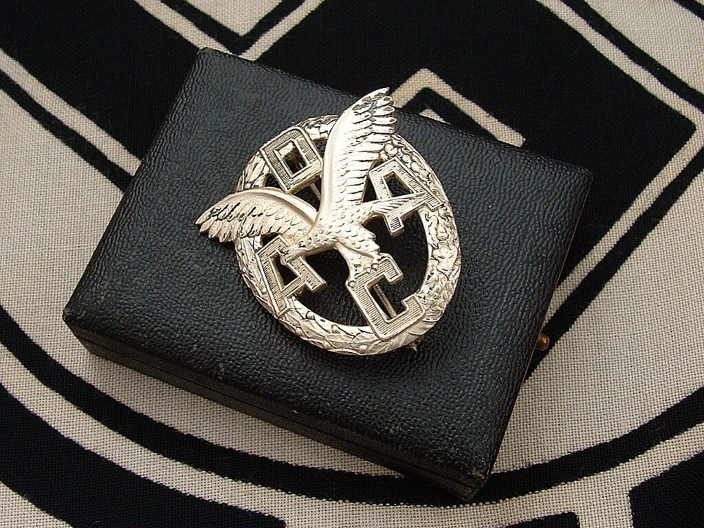 Awards and Medals WWI Iron Cross 1914 and Black Wound Badge Stickpin – M10919 War Merit Medals – M198Cased NSDAP 25 Year Faithful Service Medal – M263Jaeger Veterans Stick Pin – M394DJ Shooting Award – M411German National Sport Badge – M487Bronze Sports Badge – M488German Cross in Gold by Godet – M501SS FM Pin by Deschler – M504Dutch SS Financial Donator’s Stick Pin – M505SS FM Pin by Deschler – M507SS FM Stick Pin by Deschler – M508Early Buntmetal Flak Badge by Hobacher – M539Early Silver Wound Badge by Hauptmunzamt – M542Italian Youth Fascist Pin – M543WWII Japanese Commander’s Badge – M544SS FM Stick Pin by Deschler – M545Early Luftwaffe Flak Badge by Juncker – M548Stunning Early Luft Flak Badge by Assmann – M549Pre WWII ADAC Bronze Auto Club Awards Set by Deschler – M553Pre WWII ADAC Silver Auto Club Awards Set – M5543rd Reich Iron Cross 1st Class by Deumer – M559German Shooting Association Table Medal – M561WWI Iron Cross 1st Class by Königliches Münzamt Orden – M565
