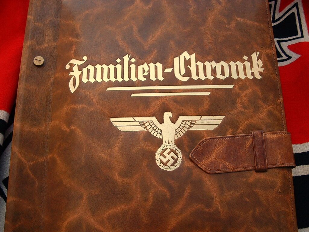 Documents & Photos Reference Book on Dachau – P144Large SS Trooper Photo – P155Knights Cross Autograph Photo of Albert Frey – P163Autographed SS Knights Cross Winner – Helmut Schreiber – P165Wehrmacht Guard Photo – P169Wehrmacht Kanoneer – P1703rd Reich Family History Log Book – RC109SS Leader’s Song Book – RC110Meine Kampf – RC112Period 1935 SS Dienstaltersliste – RC128German Art Expo Catalog – RC135SS Officer’s Song Book – RC136Aryan Lineage Pass Log – RC139Rare SS Family Chronicle Log Book – RC140SS Liederbuch Song Book – RC145Liederbuch Song Book – RC147